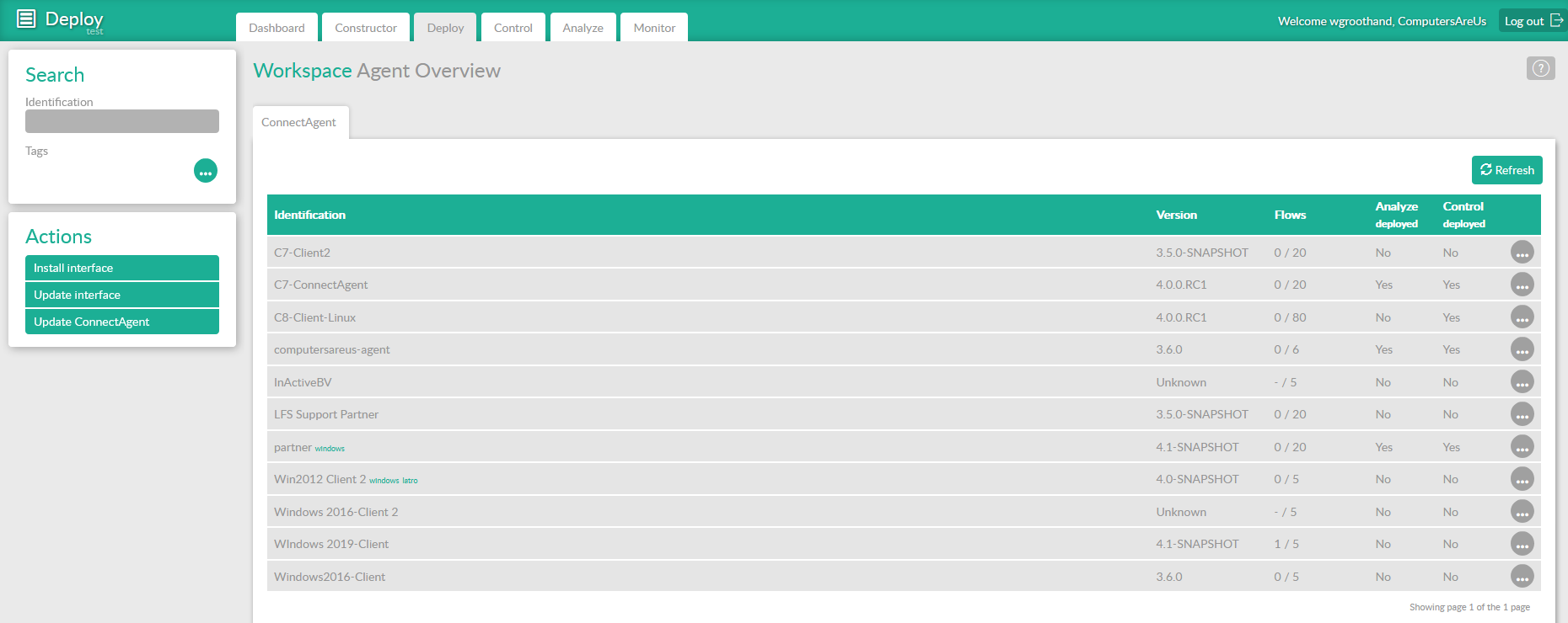 If you login with a Developer account, choose the Deploy application. You will enter a selection screen where you can select the agent you want to install.