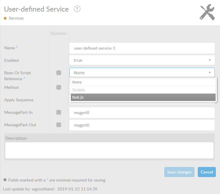 There are a number of components, as described above, where you can use scripts. You can only use scripts available in the selection box. This can also be Java Beans or other resources. The system knows which resources to put into your selection box.